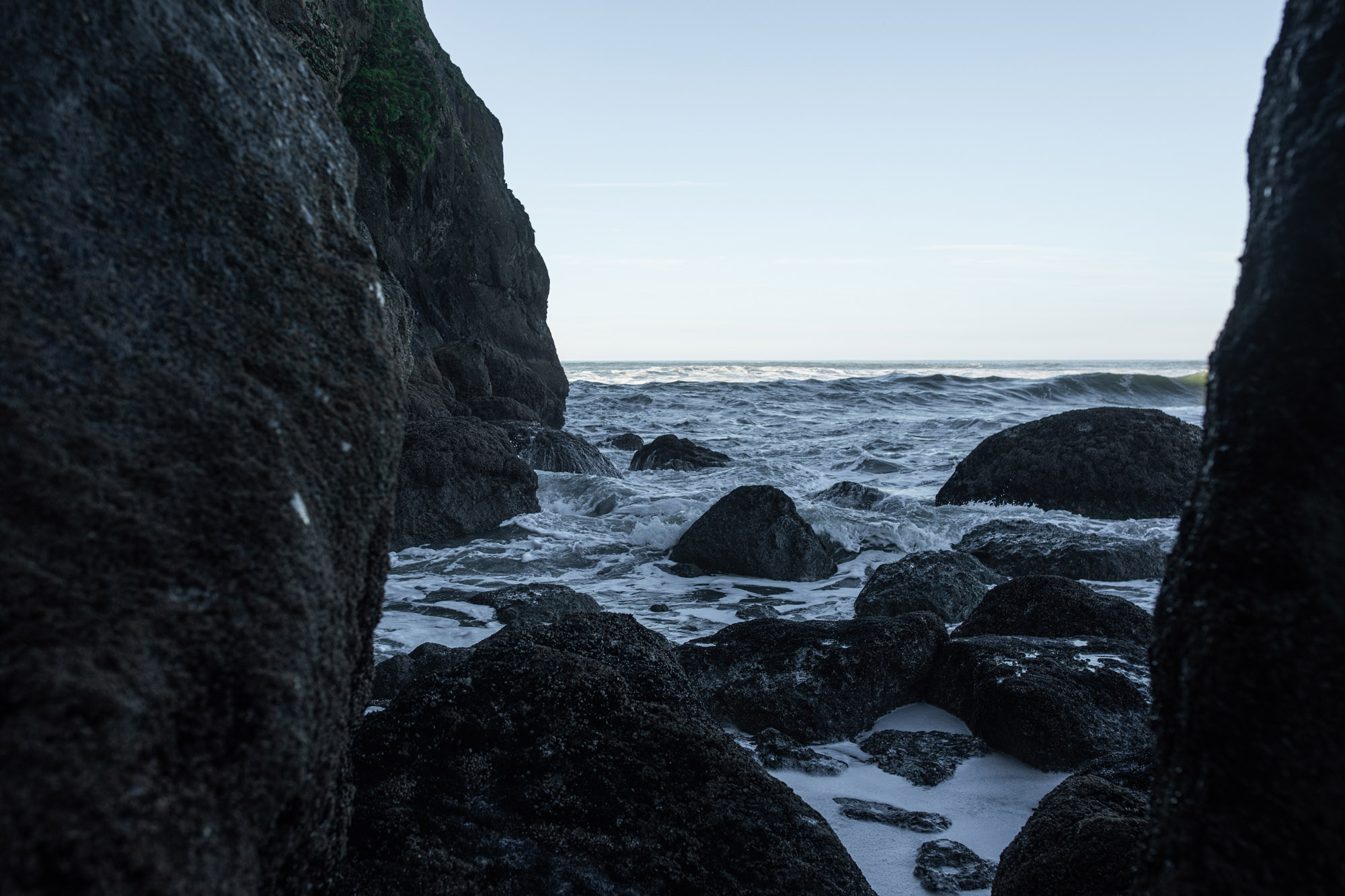 While it seemed little could follow the Hoh Rainforest in grandeur, Ruby Beach is a strong contender. Expansive, wild, and scenic, the larger stretch of the beach, being blocked off by an outlet rushing towards the sea, required a rushing water crossing to access. After some debate, we decided to make the literal jump. Just wider than our jump and just deeper than our boots, two of us wound up a bit soggy from the effort, but we, nonetheless, made it across. I felt a bit strange doing so, for we quickly left all the other beach visitors behind (not even one other daring to cross as us the likely fools did). Unfettered, we ran about on the larger portion of the beach alone us three, made more accessible by the low tide.
